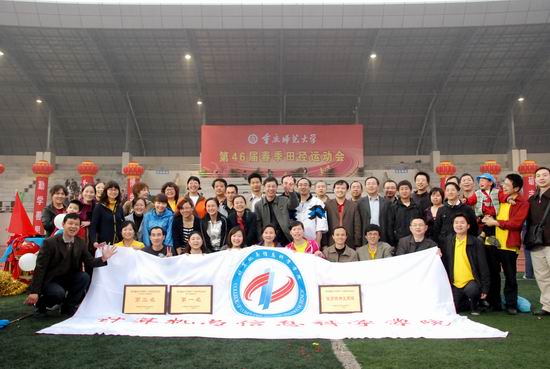 继去年第四十五届春季田径运动会,新学院第一次亮相田径场便获得教工团体总分第一名、体育精神文明奖后,本次田径运动会再次蝉联教工团体总分第一名和体育精神文明奖!