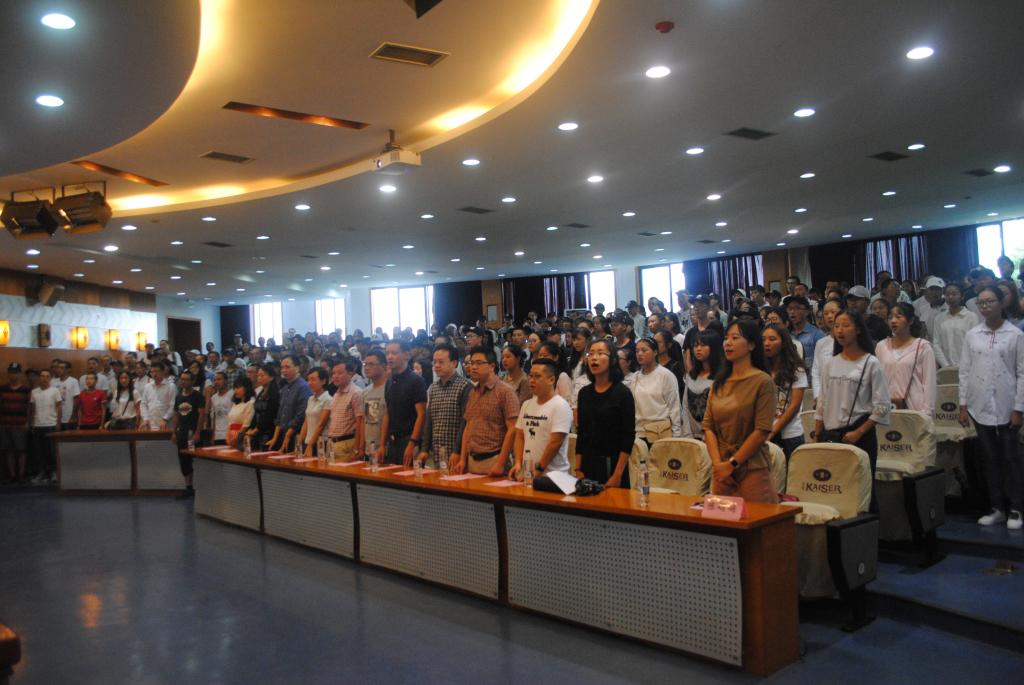 上图为全场师生同唱校歌