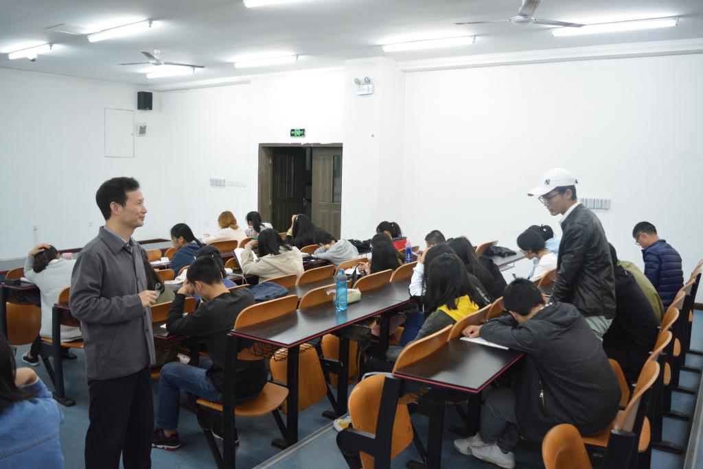 王老师在做完自我介绍后,便用网络上关于科技方面的几个问题逐步切入主题。首先,对我校“学高为师,身正为范”进行了解读,并对其中的“身正”引用孟子的“心正则眸子正”来具体阐述,而这八个字的基础在于做人,不失其德,不失其范以彰其学高身正。随后,以“作为大学生和中学生的我们有什么不一样?”为问题与同学进行了讨论,指出中学的外驱动力和大学的内驱动力,让同学们对其大学的学习生活有了一个更深入的了解。之后,以“磨道上的驴,只手的声音”中驴的意象指出主动学习和被动学习目标及结果的不同,并以他亲身经历讲述了在决定考研考博时的心路历程。在互动环节,用提问及讲述禅宗的故事举例告诉同学们要倾听自己的声音,知道自己是谁、想干嘛、一生为自己学习什么。由此引出青春的定义即是成长,并用学习滋养成长,为开花结果存储力量。最后,王老师引用《视驼所种树》中种树的道理来表达了老师们对2017级的同学们的期望和祝福。
