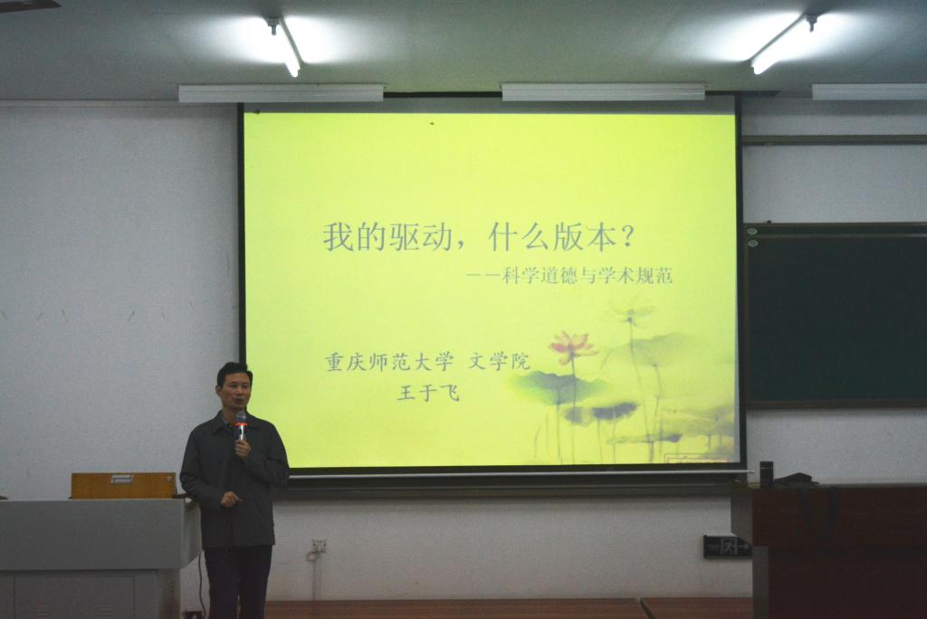 2017年10月11日星期三晚上七点整,9728太阳集团在励志楼2113教室举行了新生科学道德与学术规范教育讲座。此次讲座有幸邀请到太阳集团官网tyc9728文学院王于飞教授主讲,并由傅帆老师主持。