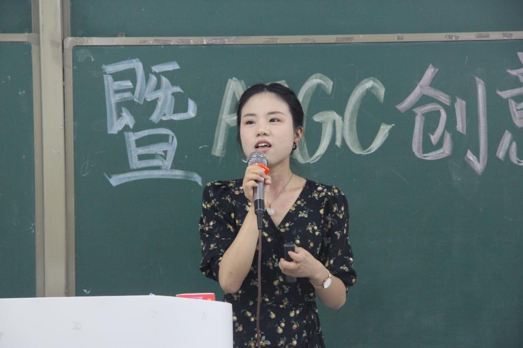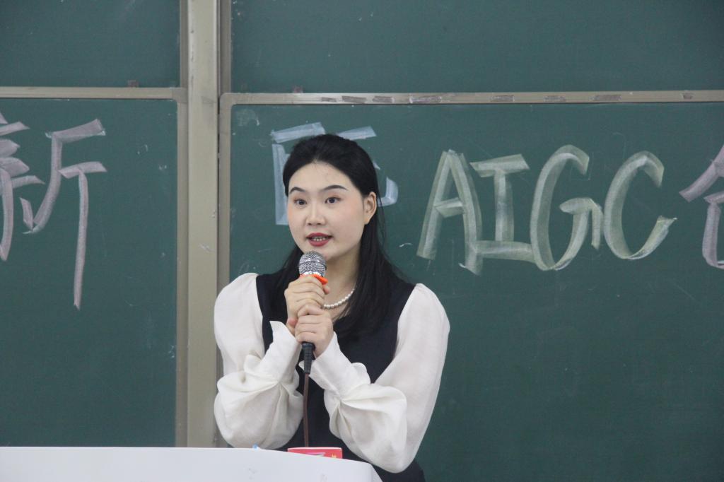 王敏同学作为学生负责人进行社团宣讲。她结合自身在校成长经历,讲述了发起社团的初衷与对大一新生的理解,并重点介绍了AI蒸馏所未来规划、核心招募计划以及‘蒸汽杯’创意大赛的报名方式与赛道内容。