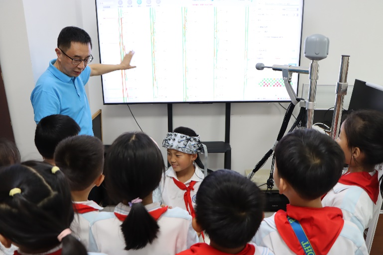 近日,太阳集团官网tyc9728智慧教育研究院携手我校附属中小学,首次将功能性近红外光谱技术(fNIRS)脑成像实验引入学校课堂,开创了科教协同育人的创新实践。被试学生在专业研究人员指导下,通过佩戴便携式fNIRS设备,在观看教学视频、完成认知任务的过程中,首次直观地感受到自己大脑处理信息的动态变化。这种“看得见”的科学体验打破了传统课堂的边界,将抽象的理论转化为生动的实践,极大地激发了青少年对脑科学与认知研究的兴趣。