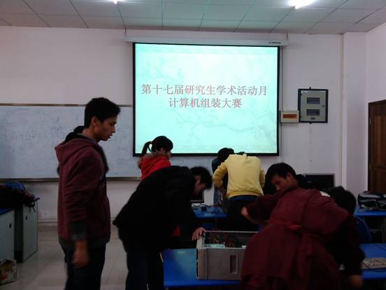 赛前由主持人范文祥同学宣布比赛规则,并且宣布本次活动由计算机组装比赛和计算机作品展示两部分构成,其中计算机作品包括PPT作品,Flash动画以及网站设计等。