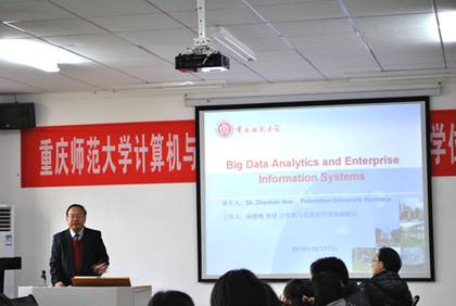 为了让学生了解信息时代的发展,帮助学生开拓视野、发散思维,提升研究生的能力和素质,2014年12月17日上午9:30在汇贤楼213会议室,澳大利亚联邦大学孙兆豪教授为我院师生带来题为《Big Data Analytics and Enterprise Information Systems》的精彩学术报告。报告由学院副院长杨德刚教授主持。