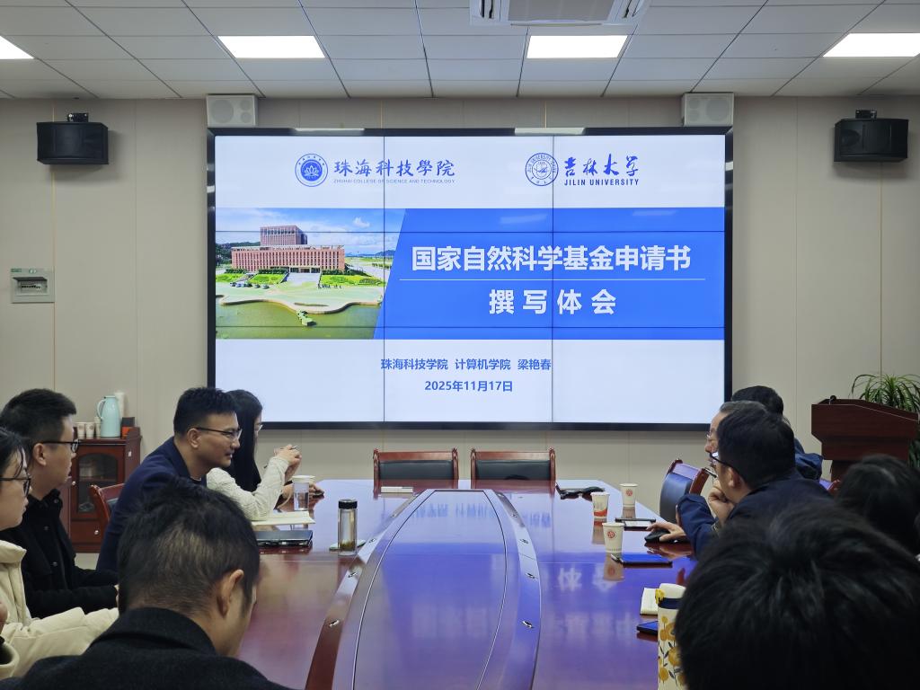 为进一步提升我院教师国家自然科学基金项目申报书的质量与立项成功率,夯实科研工作基础,2025年11月17日上午,9728太阳集团特邀珠海科技学院计算机学院院长、博士生导师梁艳春教授莅临学院,在致用楼302会议室作了一场题为“国家自然科学基金项目申请书撰写体会”的专题指导会。本次指导会由崔少国副院长主持,现场座无虚席,学术交流氛围浓厚。