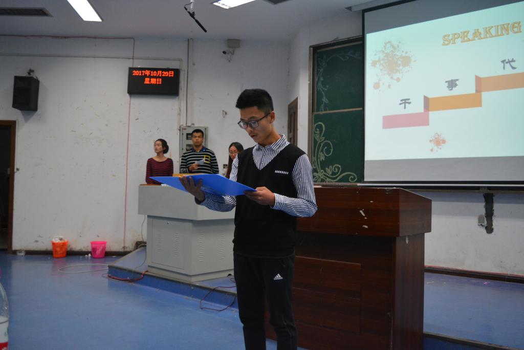 在这之后,大家观看了一段由团学会干部所拍摄的视频。幽默诙谐的风格调动起全场气氛,现场掌声不断。随后,每个部门的成员依次上台介绍自己的部门,出其不意的介绍方式和表演让人捧腹大笑,笑声中无形增进了大家的紧密度和团结性。最后,干事代表胡成涛同学进行了发言,代表所有新成员表明决心,成立大会到此结束。