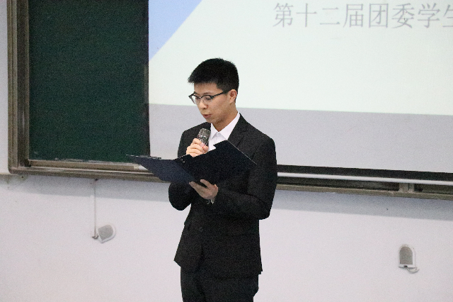 会议伊始,第十二届团委学生书记蒋承志进行了工作汇报,蒋承志从两个方面对第十二届团委工作进行了总结,一是推动团学思想组织建设,做到思想责任能力三到位;二是落实六大育人体系,打造计信特色活动。他表示计信学院团学工作以培养有思想、有能力、有担当的青年大学生为任务,创新性开展“感•触”式理想信念教育。旨在让同学们在工作实践中学会学习、学会思考、拥有信念、追求真理,为学生、学院、学校服务,成为社会主义的合格建设者和可靠接班人!