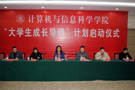 为了大力加强我院学生的思想政治工作,积极探索学生工作的新机制和新模式,帮助同学们在思想上成长、在专业上成才。2010年12月2日下午2:30,我院在三春湖会议厅举行了“大学生成长导师”计划启动仪式。学校党委龚燕副书记、学生处党亚莲处长,马燕院长、刘军书记、魏延和杨晓红副院长、李晓燕副书记等出席了本次启动仪式,会议由刘军书记主持。