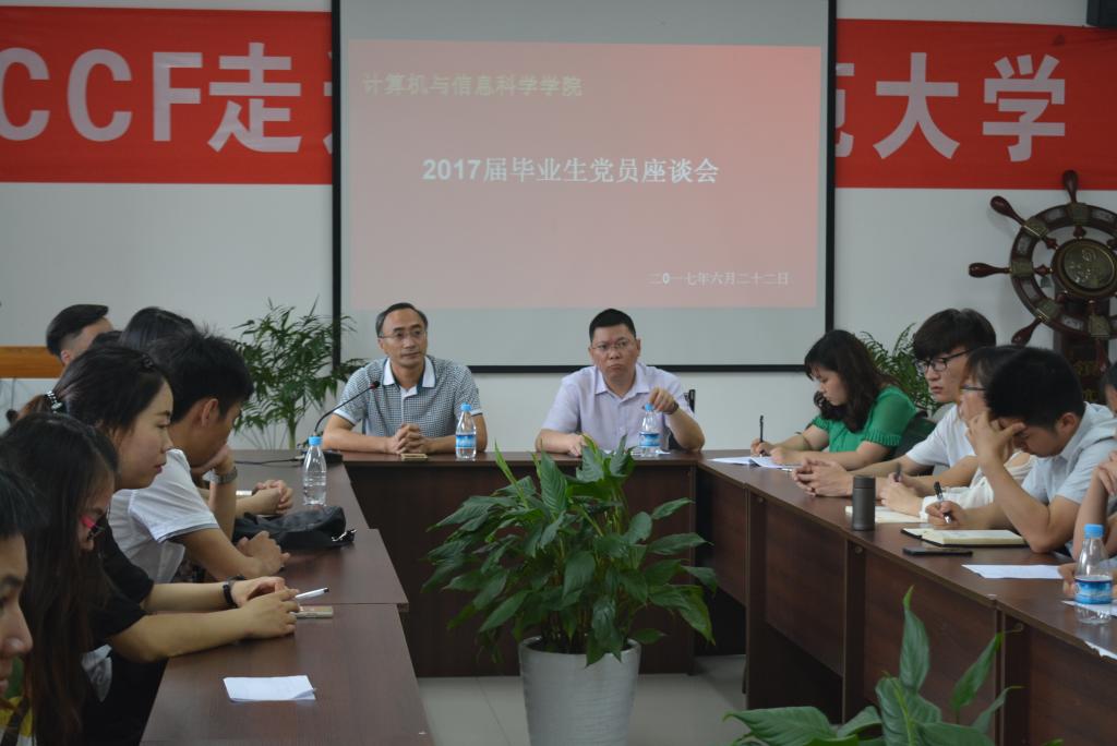 会上,刘军书记对毕业生党员提出了期望、要求和祝福,21名毕业生党员分别分享了自己在校4年/3的收获、感悟和建议,纷纷表达了对母校的感谢,也展现了自我的成长,更对党组织生活和学院党建建设提出了宝贵建议。魏延院长在会上总结发言,表示党员同学代表了学院的风采和成果,感谢毕业党员为学院、学校和社会做出的贡献,在大家的建议和祝福下,学院将不断完善,是计信学子的坚强后盾。最后,刘军书记再次感谢大家的分享,提出“不忘学习,提升自我;不忘身份,勇于担当;不忘初心,牢记使命”。