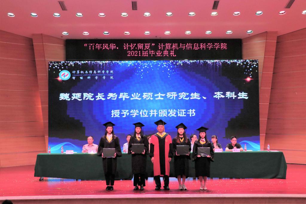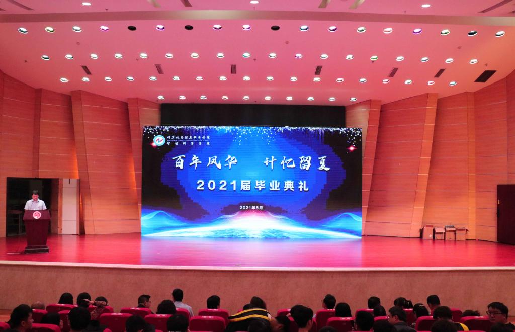 迎建党百年华诞之际,庆计信学子毕业典礼。2021年6月25日星期五下午2时30分,我院2021届毕业典礼暨学位授予仪式在校友会堂音乐厅隆重举行。出席典礼的有计信学院党委书记陈兰、院长魏延、党委副书记何东、副院长李世宏、副院长杨德刚、各专业系主任老师、各年级辅导员老师、2021届全日制研究生及本科毕业生。本次典礼由何东书记主持。