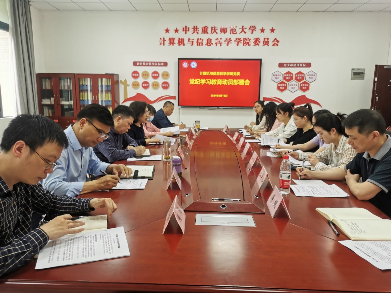 学院党委会前印发了习近平总书记关于全面加强党的建设和党的纪律建设的重要讲话精神等学习资料。会议首先由陈兰领学习近平总书记关于党的纪律建设的重要论述。在全党开展党纪学习教育,是以习近平同志为核心的党中央作出的重大决策,是加强党的纪律建设、推动全面从严治党向纵深发展的重要举措,是党的政治生活中的一件大事。习近平总书记多次就开展党纪学习教育发表重要讲话并作出重要指示,强调要“坚持党性党风党纪一起抓,推进纪律教育常态化,加大《中国共产党纪律处分条例》宣传教育力度,引导广大党员、干部学纪、知纪、明纪、守纪”“组织开展好党纪学习教育,督促领导干部树立正确权力观,公正用权、依法用权、为民用权、廉洁用权”。习近平总书记的重要讲话和重要指示,为开展党纪学习教育提供了重要遵循。陈兰还传达了学校党纪学习教育专题部署会和张艳书记重要讲话精神,组织学习重师委发(2024)18号《关于在全校开展党纪学习教育的实施方案》文件。