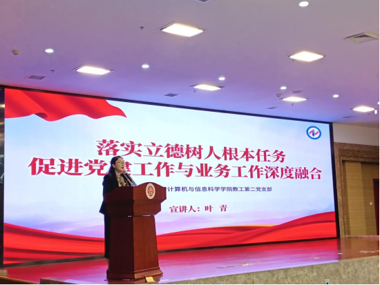 经过激烈角逐,共评选出特等奖2名、一等奖4名、二等奖6名、三等奖6名。我院教工第二党支部书记叶青代表学院参赛,获得二等奖第一名的好成绩。她以“落实立德树人根本任务,促进党建工作与业务工作深度融合”为题进行理论宣讲。宣讲结合支部工作实际,阐释如何从机制融合、队伍融合、评价融合三方面拓展融合途径,从“党建+课程思政”“党建+科技创新”“党建+服务社会”三个维度创新融合模式,实现“一融双高”的新时代高校党建和事业融合发展思路。在答辩环节,针对案例准确地阐明了党费的使用规则和范围,得到评委的一致认可。本次大赛既是展示风采的舞台,更是互学互鉴的平台。赛事充分展现了我校党支部书记队伍“政治强、业务精、作风正”的优良素质,为推进基层党建高质量发展注入新动能。