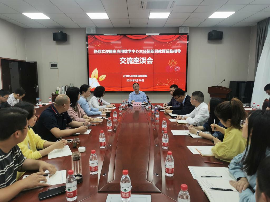 座谈会上,魏延院长首先对杨新民教授的到来表示热烈欢迎,感谢其一直以来对学院建设和事业发展的关心与支持。随后,杨新民教授介绍了国家应用数学中心(以下简称“中心”)的来历、现状和发展思考,重点介绍了中心的科学研究方向和平台统筹优势以及在行业企业生产发展过程中如何解决关键卡脖子问题的情况。他还根据全国两会精神,分析了当前科技和产业面临的新形势,结合自身经历用轻松幽默的语言,与青年教师生动的讲述了教学、科研尤其是服务产业和地方经济的经验、做法和心得。他强调,要进一步明确定位、梳理优势、强化特色,坚持开放的思想,加强海外人才引进,深化交流互通、共促发展;在人工智能、大模型、大数据等新技术背景下,计算机学科迎来发展机遇,年轻人要抢抓科研机遇,注重学校师范特性,从小切口入手来做好科学研究,为帮助经济社会及产业中难题解决提供智力支撑。