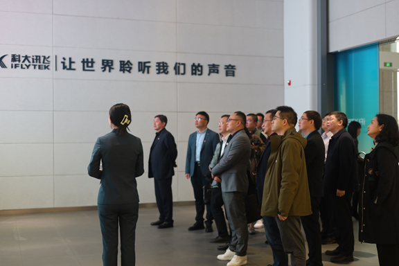 孟小军一行首先参观了科大讯飞人工智能体验馆,工作人员详细介绍了科大讯飞作为人工智能国家队,在突破“卡脖子”技术、服务国家重大战略布局方面的进展以及人工智能在智慧教育、智慧财务、智慧城市等领域的应用情况。孟小军对科大讯飞的技术突破和在人工智能领域的创新成果给予了高度评价。